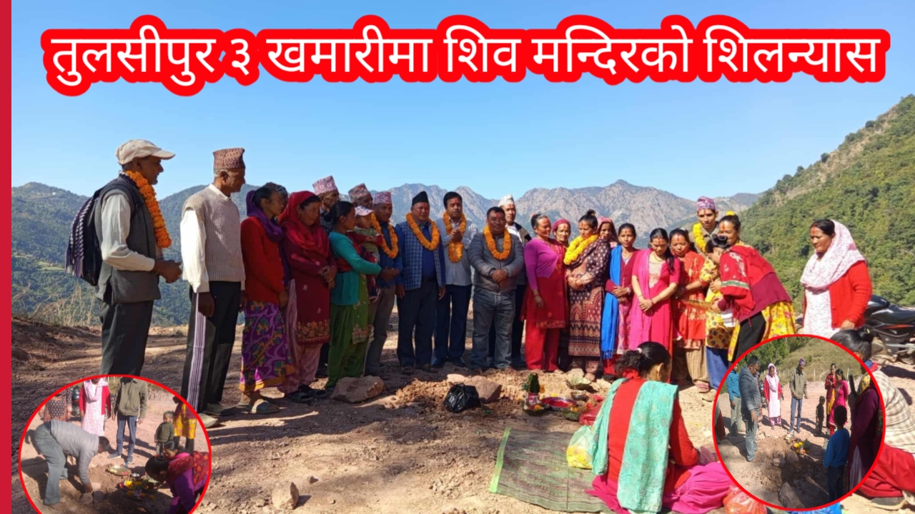सातले सात मन्दिर पर्यटन विकास समितिको पहलमा तुलसीपुर उपमहानगरपालिका वडा नम्बर ३, खमारीमा निर्माण हुन लागेको शिव मन्दिरको आज एक विशेष समारोहका बीच शिलान्यास गरिएको छ। समाजसेवी कलिभान रोकाले जानकारी दिनुभएको छ