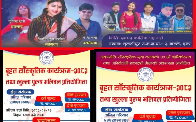 तुलसीपुरमा बृहत् सांस्कृतिक कार्यक्रम र खुला पुरुष भलिबल प्रतियोगिता हुने